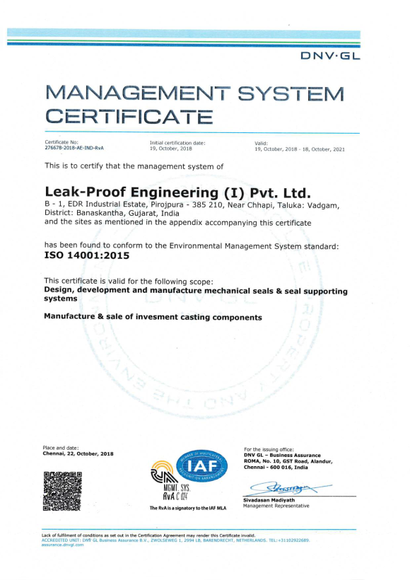 We have implemented IMS through achievement of ISO 9001:2015, ISO 14001:2015 & ISO 45001:2018 certification. Through implementation and adherence to IMS, we assure that Leak-Proof operates to the highest quality standards and meet all regulatory requirements for our products and services with Continuous improvement for our products and services’ quality.